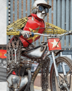 • Salute to the Wimbledon Speedway on display in the Plough Lane forecourt – Ronnie Moore (all recycled).